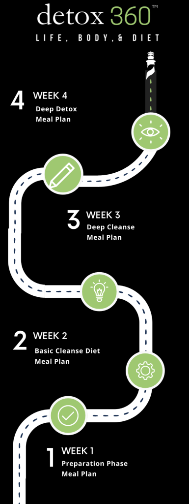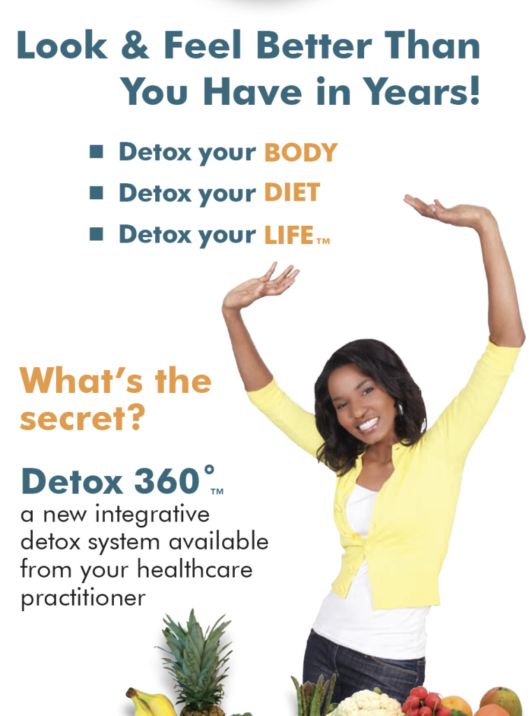 The goal of the Detox 360 program is to provide a clinically tested system of dietary and lifestyle recommendations, with supportive formulas, which when used together, will support the release of your toxic load while giving your system a break.